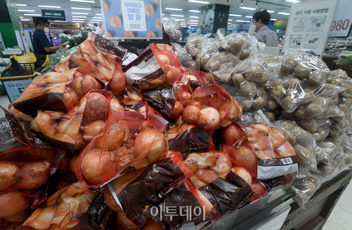 통계청이 4일 발표한 ‘2020년 7월 소비자물가동향’에 따르면 지난달 채솟값이 긴 장마 등의 영향으로 전년 동월대비 16.3%나 폭등, 전체 물가상승률(0.3%)을 크게 웃돈 것으로 나타났다. 배추가 35.7% 올랐으며 고구마 37.0%, 양파 39.9%, 상추 35.9% 등의 상승률을 기록했다. 이날 서울의 한 대형마트 신선식품 판매대에서 시민들이 장을 보고 있다.