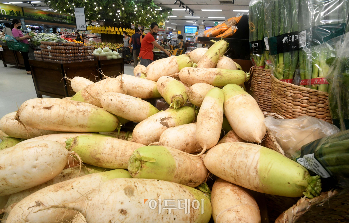 통계청이 4일 발표한 ‘2020년 7월 소비자물가동향’에 따르면 지난달 채솟값이 긴 장마 등의 영향으로 전년 동월대비 16.3%나 폭등, 전체 물가상승률(0.3%)을 크게 웃돈 것으로 나타났다. 배추가 35.7% 올랐으며 고구마 37.0%, 양파 39.9%, 상추 35.9% 등의 상승률을 기록했다. 이날 서울의 한 대형마트 신선식품 판매대에서 시민들이 장을 보고 있다.