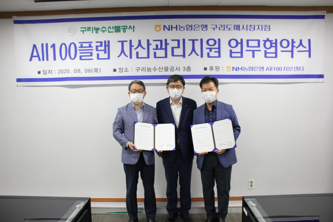이번 협약으로 농협은행 'NH All100자문센터'는 구리농수산물도매시장 유통인에게 안정적이고 성공적인 자산관리를 위한 은퇴설계, 자산관리, 세무, 부동산 등의 전문 금융강의 및 상담을 제공한다.