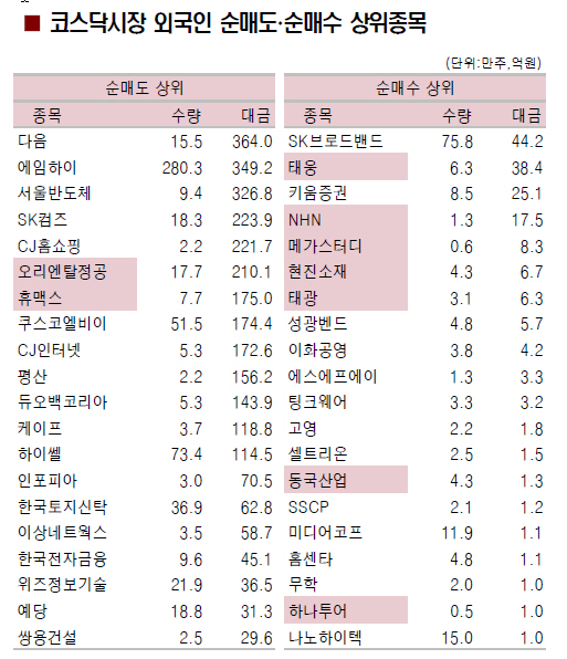 (11/3) 코스닥, 외국인 매매 동향 - 현대證