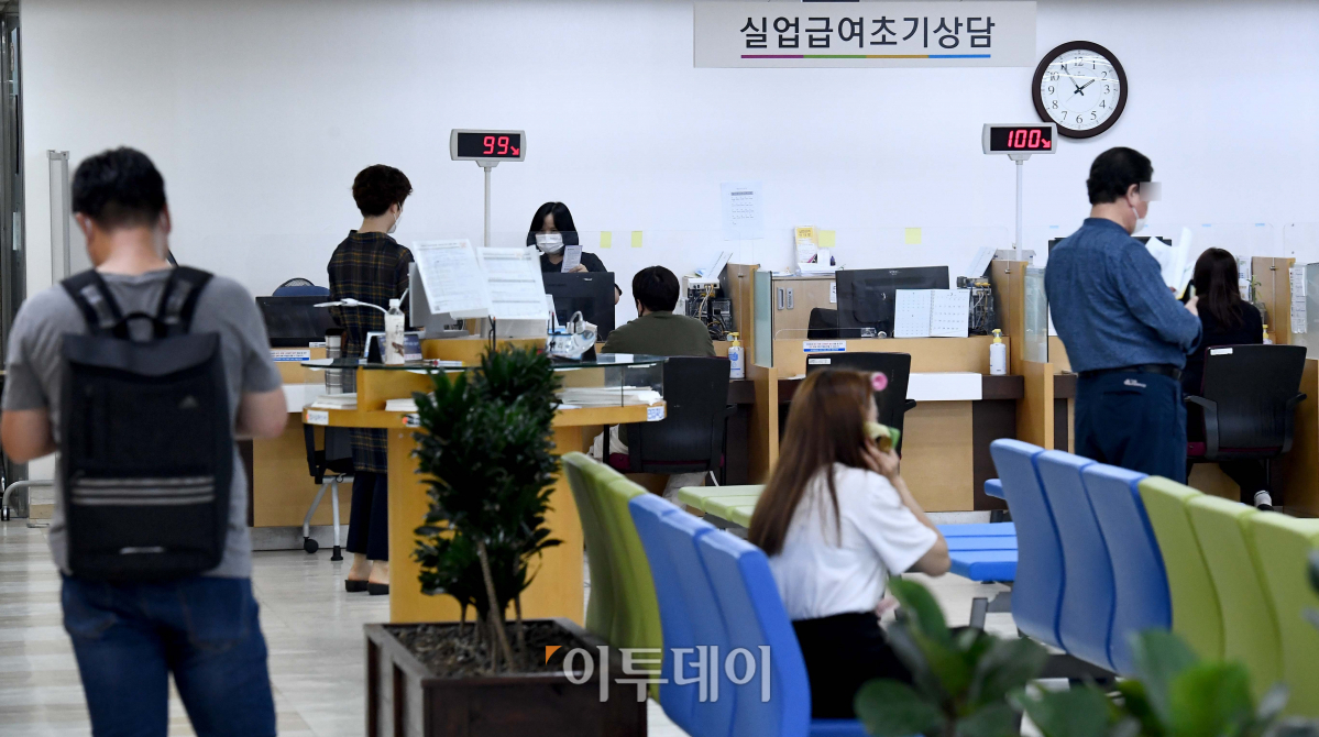 지난달 실업급여 지급액이 작년 같은 달 대비 4296억원(56.6%) 급증하며 역대 최대 기록을 경신했다. 고용노동부가 10일 발표한 ‘7월 노동시장 동향’에 따르면 지난달 구직급여 지급액은 1조 1885억원을 기록했다. 이는 지난 6월 기록한 역대 최대치(1조 1103억원)를 한 달 만에 넘어선 것으로, 구직급여 지급액은 신종 코로나바이러스 감염증(코로나19) 확산이 본격화한 올해 2월부터 6개월 연속으로 역대 최대 기록을 갈아치우고 있다. 이날 서울 중구 서울고용복지플러스센터에서 구직자들이 실업급여 상담을 받고 있다.