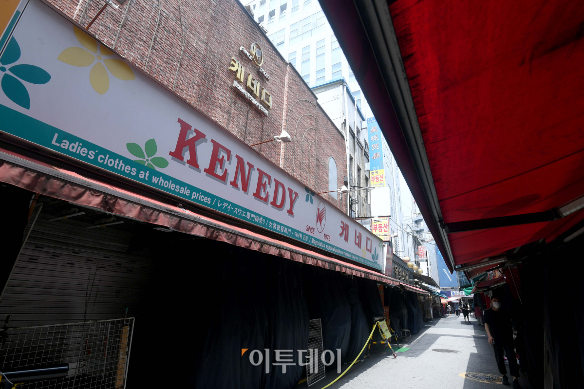 서울 남대문시장 케네디상가에 이어 인근 중앙상가에서도 코로나19 확진환자가 발생한 가운데 11일 서울 중구 케네디상가 골목이 썰렁한 모습을 보이고 있다. 이날 서울시에 따르면 중앙상가 상인 1명이 지난 10일 추가 확진판정을 받았으며 남대문시장 상인 가운데 코로나19 검체검사에서 양성 판정이 나온 상인은 현재까지 9명이다.