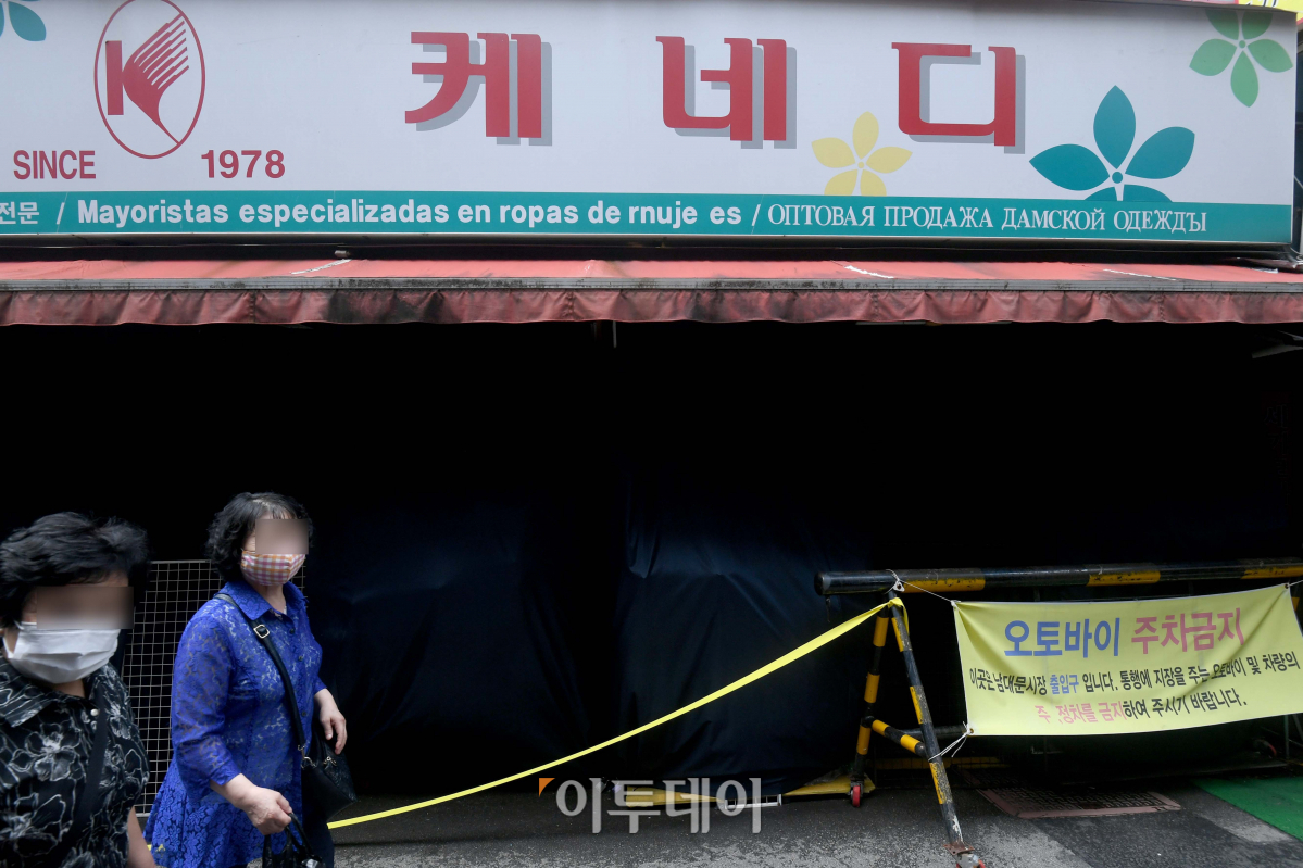 서울 남대문시장 케네디상가에 이어 인근 중앙상가에서도 코로나19 확진환자가 발생한 가운데 11일 서울 중구 케네디상가의 문이 닫혀 있다. 이날 서울시에 따르면 중앙상가 상인 1명이 지난 10일 추가 확진판정을 받았으며 남대문시장 상인 가운데 코로나19 검체검사에서 양성 판정이 나온 상인은 현재까지 9명이다.