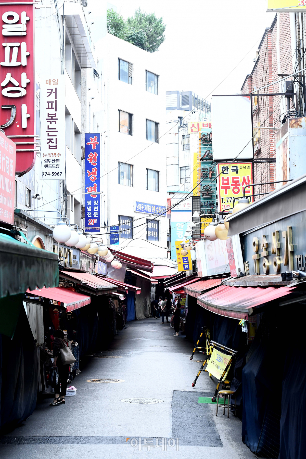 서울 남대문시장 케네디상가에 이어 인근 중앙상가에서도 코로나19 확진환자가 발생한 가운데 11일 서울 중구 케네디상가 골목이 썰렁한 모습을 보이고 있다. 이날 서울시에 따르면 중앙상가 상인 1명이 지난 10일 추가 확진판정을 받았으며 남대문시장 상인 가운데 코로나19 검체검사에서 양성 판정이 나온 상인은 현재까지 9명이다.