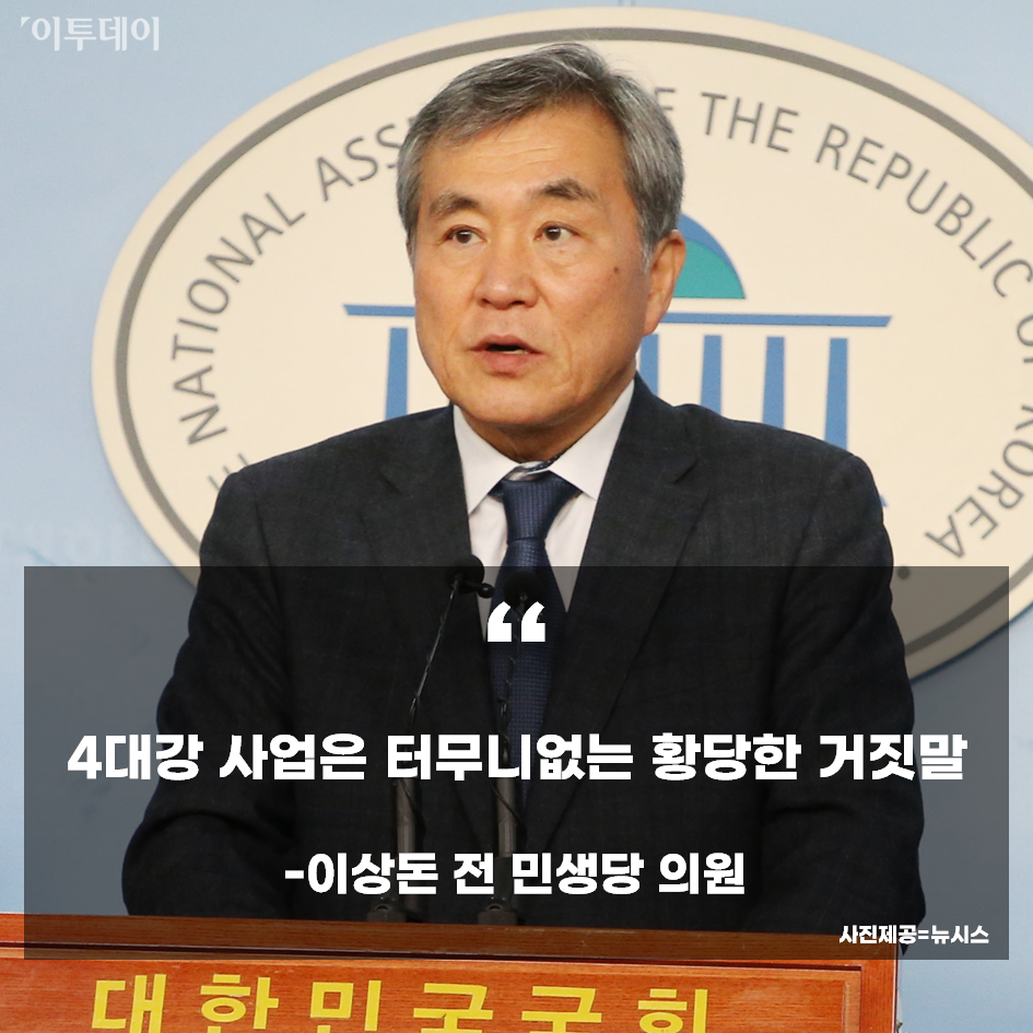 이상돈 전 민생당 의원이 4대강 사업을 강도 높게 비판했습니다. 이상돈 전 민생당 의원은 11일 오후 CBS라디오 '시사자키 정관용입니다'에 출연해 "대운하를 얘기할 때부터 세상에 저거는 있을 수 없는 일이라고 했고, 4대강 사업도 터무니없는 다 허황된 거짓말"이라며 "완전히 대사기극"이라고 주장했습니다. 이상돈 전 의원은 2011년 한나라당 비상대책위원 시절부터 이미 4대강 사업을 지적한 바 있으며, 중앙하천위원회에서 4대강 사업의 최종 심의 위원을 맡기도 했습니다.
