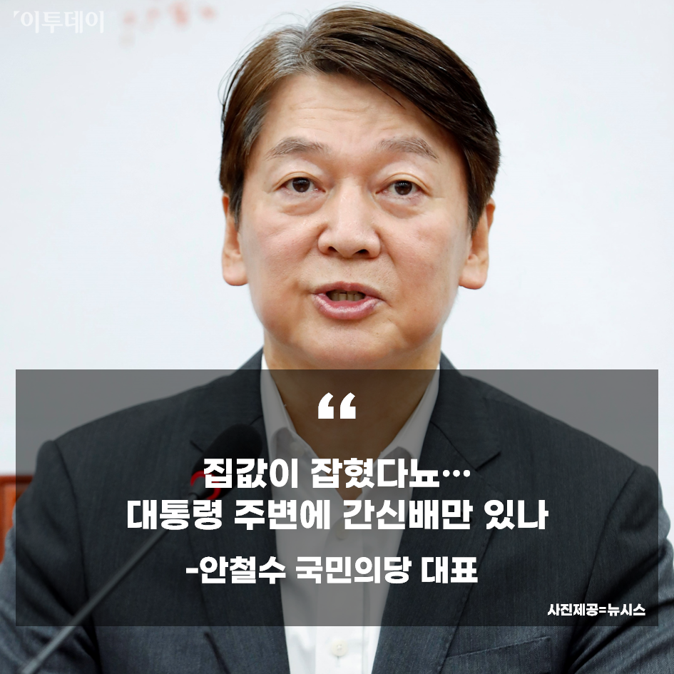 안철수 국민의당 대표가 "어제(10일) 집값이 안정되고 있다는 대통령의 발언은 이 정권의 부동산정책 실패로 크게 상처받은 국민 가슴에 염장 지르는 것"이라고 비판했습니다. 안철수 대표는 11일 페이스북에 글을 올려 "상황 인식과 판단에 중대한 오류가 있다. 청와대는 신문도 안 보고, 여론 청취도 안 하나"라며 이같이 말했습니다. 이어 그는 "대통령 주변이 온통 눈과 귀를 가리는 간신배들로 둘러싸여 있는 것인가. 예로부터 현군 밑에 간신 없다고 했는데, 걱정"이라고 적었습니다.