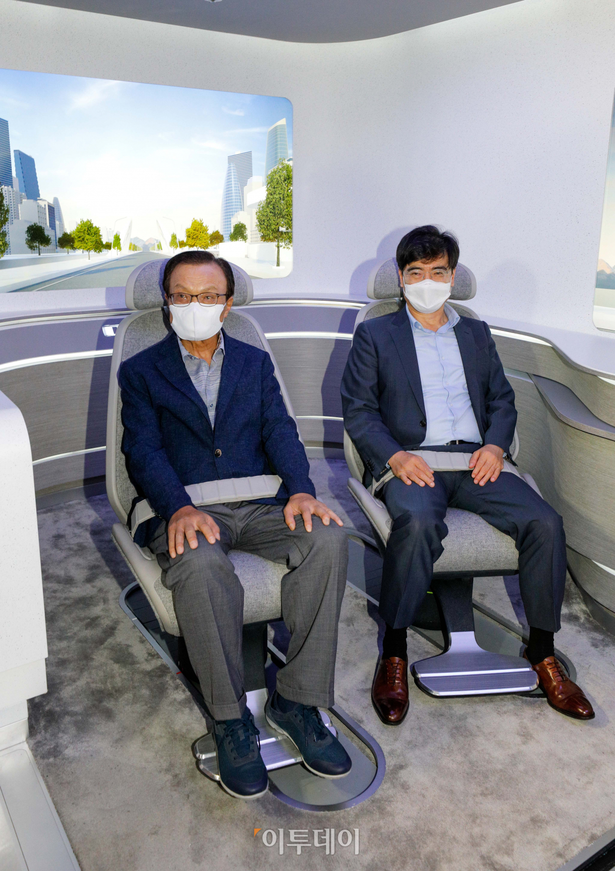 이해찬 더불어민주당 대표와 공영운 현대차 사장 등이 12일 경기 고양시 현대 모터스튜디오 고양에서 열린 ‘더불어민주당 K-뉴딜위원회, 미래차 현장간담회’에서 목적기반모빌리티(PBV) 탑승 체험을 하고 있다.