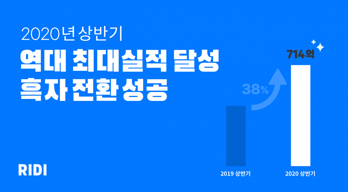 리디의 2020년 상반기 연결 영업수익은 714억 원으로 전년동기 대비 38%의 성장률을 기록했다. 특히 2009년 창업 이후 10년 동안 꾸준히 성장세를 이어온 리디는 최근 신규 콘텐츠 사업 확장 및 인수합병 시너지 등으로 창업 이래 최초로 흑자전환에 성공했다.