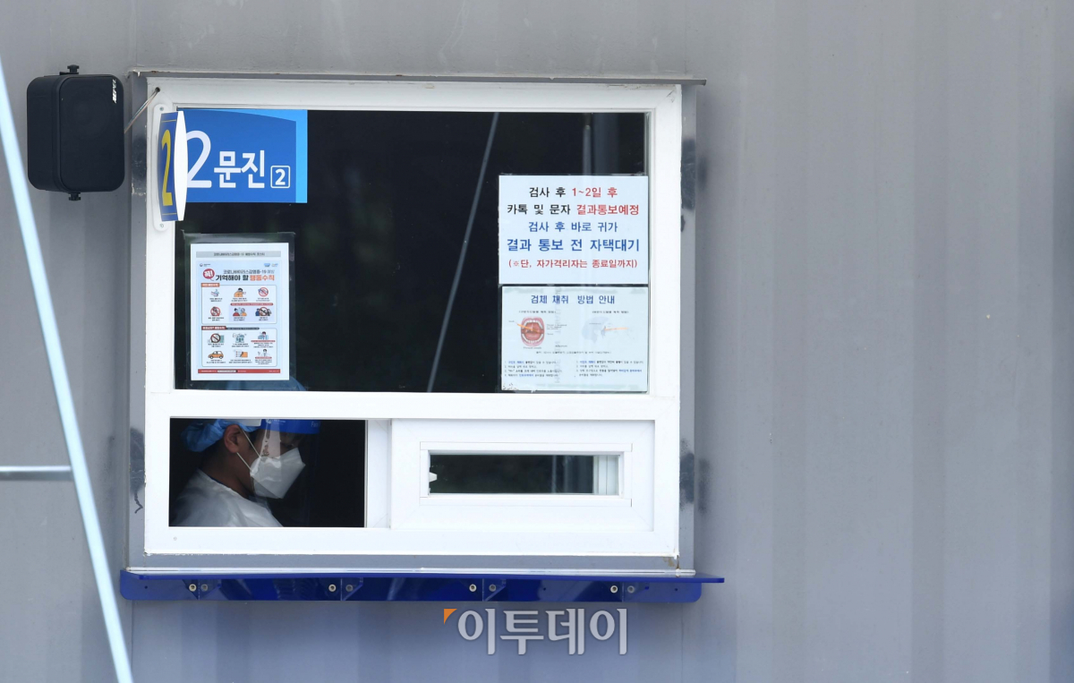 서울과 수도권 지역에서 신종 코로나바이러스 감염증(코로나19)이 재확산되는 가운데 전국 대부분 지역에 폭염특보가 발효된 18일 서울 영등포구보건소에 마련된 선별진료소에서 의료진이 업무를 보고 있다.