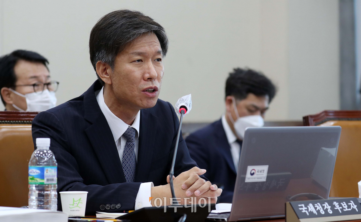 김대지 국세청장 후보자가 19일 서울 여의도 국회에서 열린 인사청문회에서 의원의 질의에 답하고 있다.