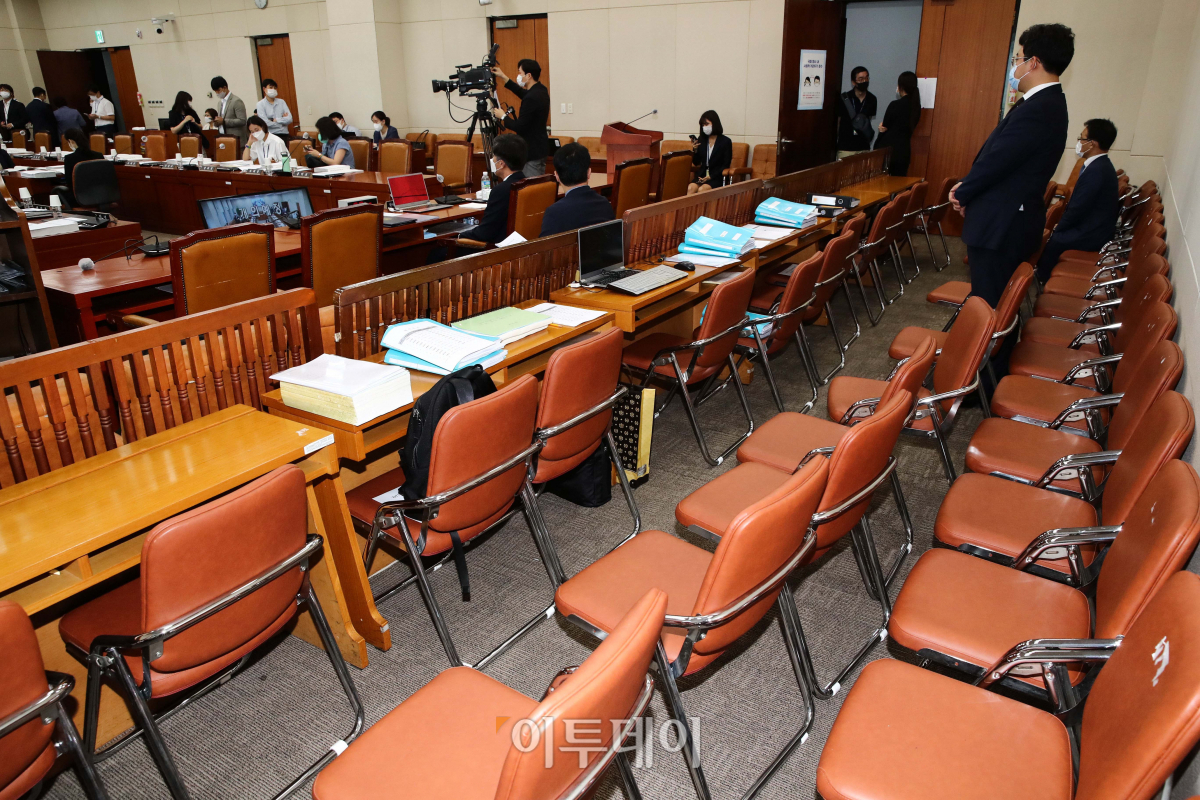 19일 서울 여의도 국회에서 열린 김대지 국세청장 후보자 인사청문회장이 정부의 ‘사회적 거리두기’ 2단계 시행에 따른 관계자 및 취재진 입장 최소화로 빈자리가 눈에 띄고 있다.