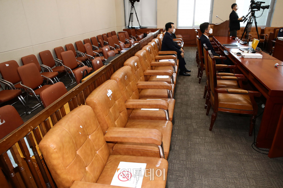 19일 서울 여의도 국회에서 열린 김대지 국세청장 후보자 인사청문회장이 정부의 ‘사회적 거리두기’ 2단계 시행에 따른 관계자 및 취재진 입장 최소화로 빈자리가 눈에 띄고 있다.