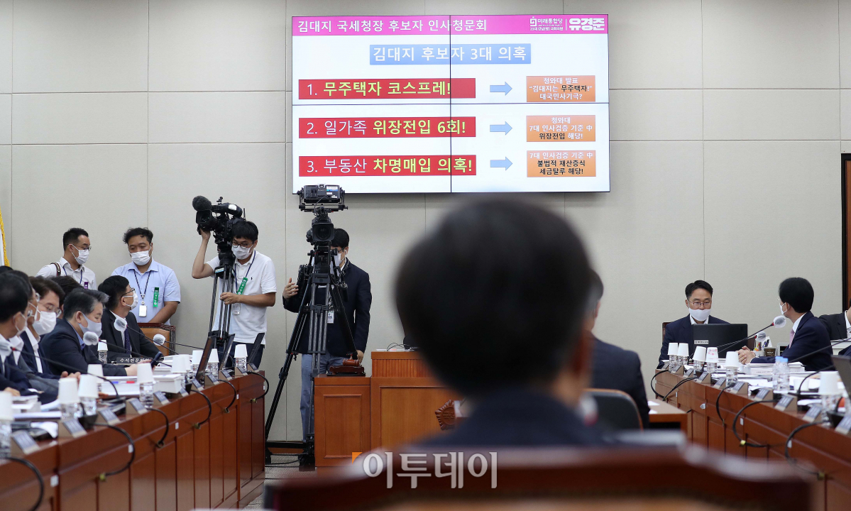 김대지 국세청장 후보자가 19일 서울 여의도 국회에서 열린 인사청문회에서 유경준 미래통합당 의원의 질의에 답하고 있다.