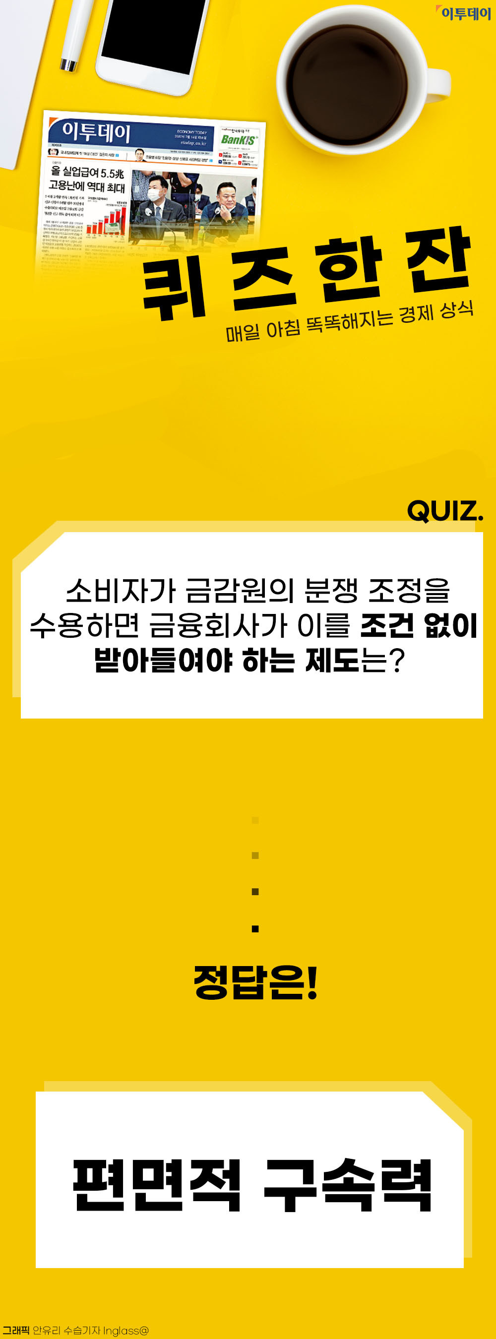 ‘퀴즈한잔’은 매일 한 문제씩 이투데이와 함께하는 경제 상식 퀴즈입니다! 매일 아침 커피 한 잔을 마시듯 퀴즈를 풀며 경제 상식을 키워나가세요!