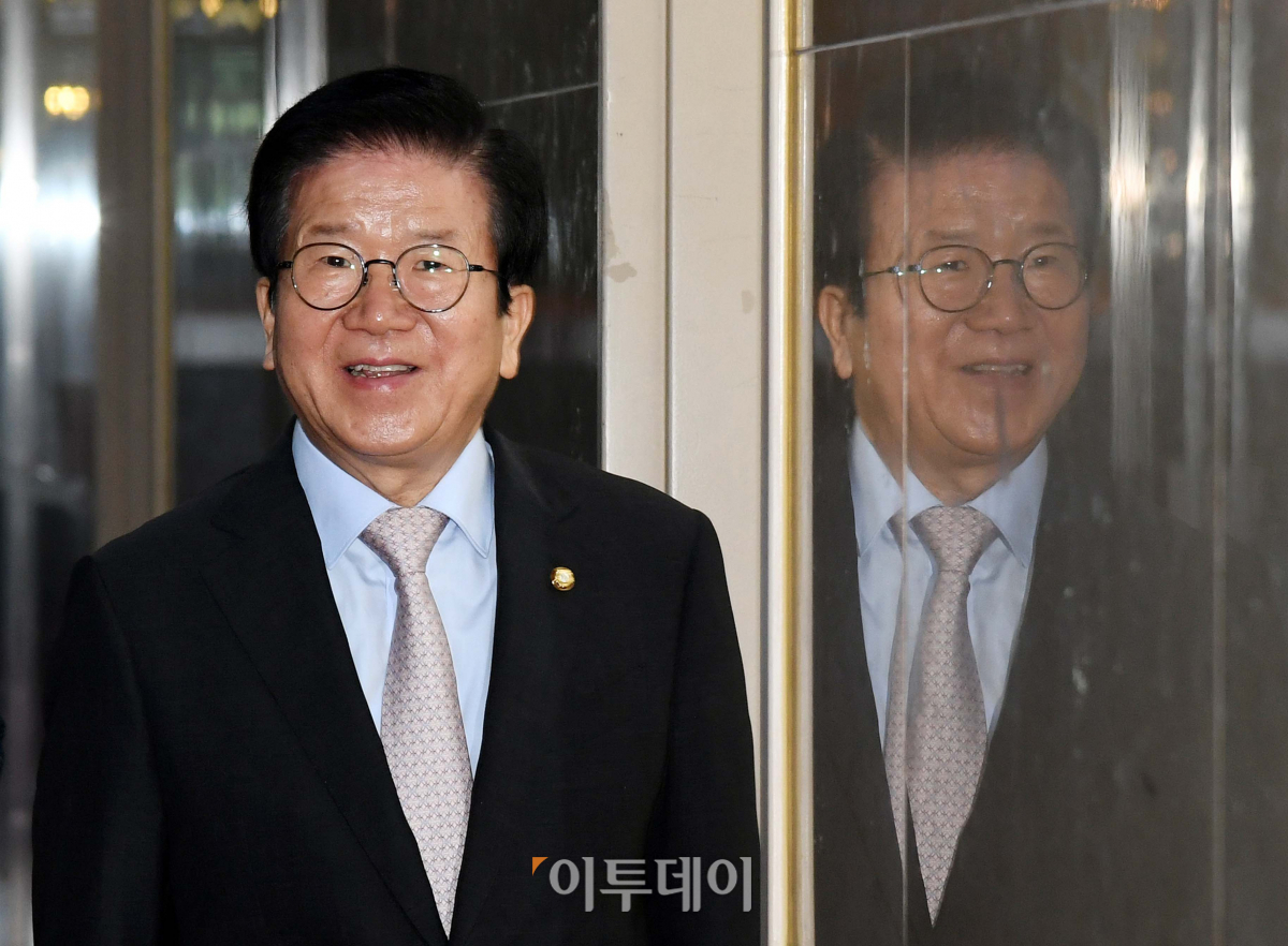 박병석 국회의장이 20일 국회 의장실에서 국회의장-여야 원내대표 정례회동을 갖기 위해 들어서고 있다.