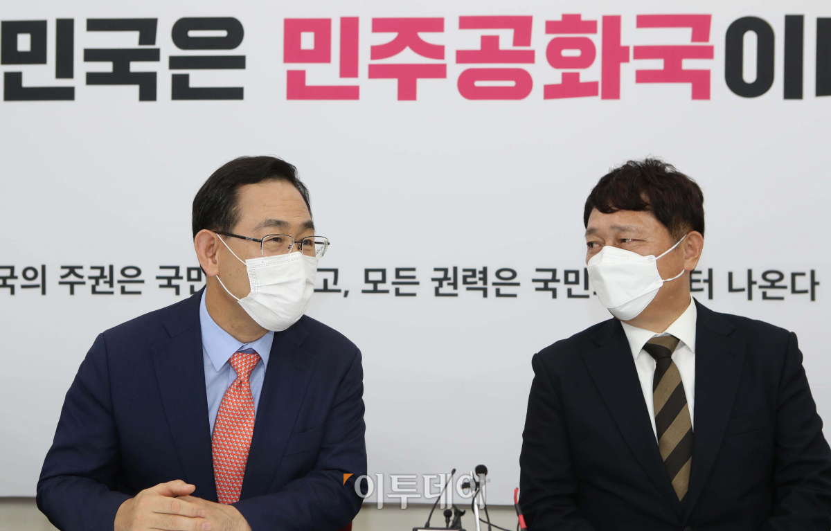 [포토] 대화하는 주호영 원내대표-최재성 정무수석