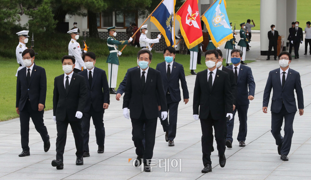 이낙연 신임 더불어민주당 대표를 비롯한 지도부가 31일 서울 동작구 국립서울현충원을 찾아 참배를 위해 현충탑으로 향하고 있다.