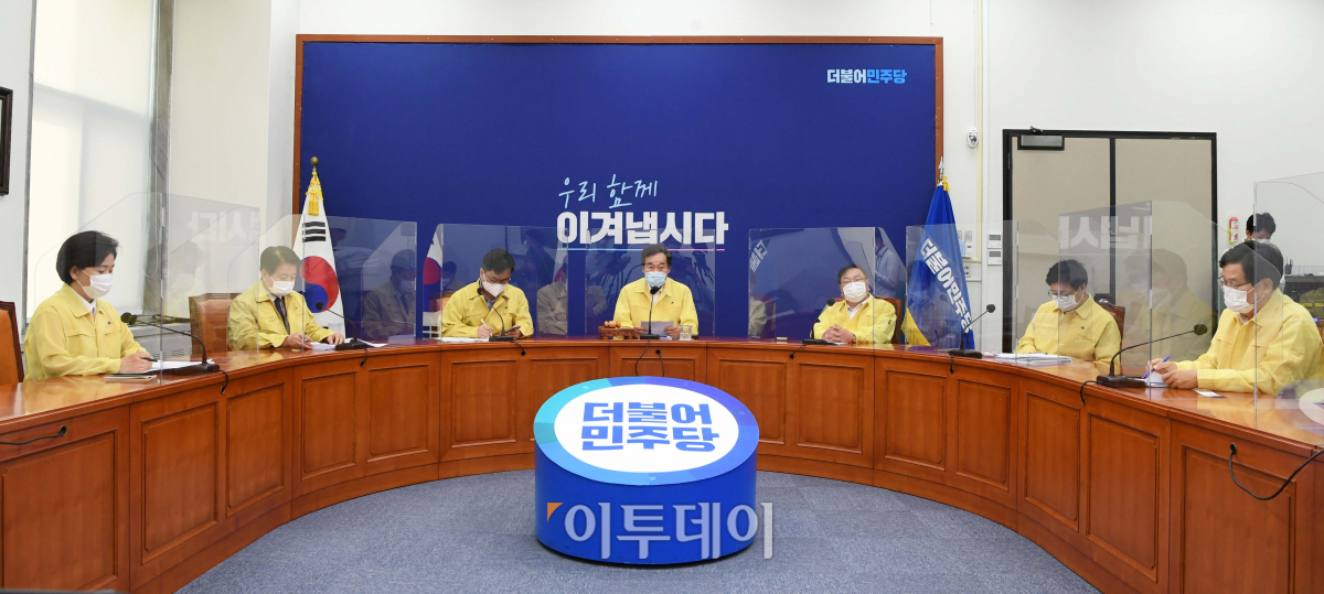 이낙연 더불어민주당 신임 당대표(가운데)가 31일 오후 서울 여의도 국회에서 열린 더불어민주당 최고위원회의에 참석해 모두발언을 하고 있다.