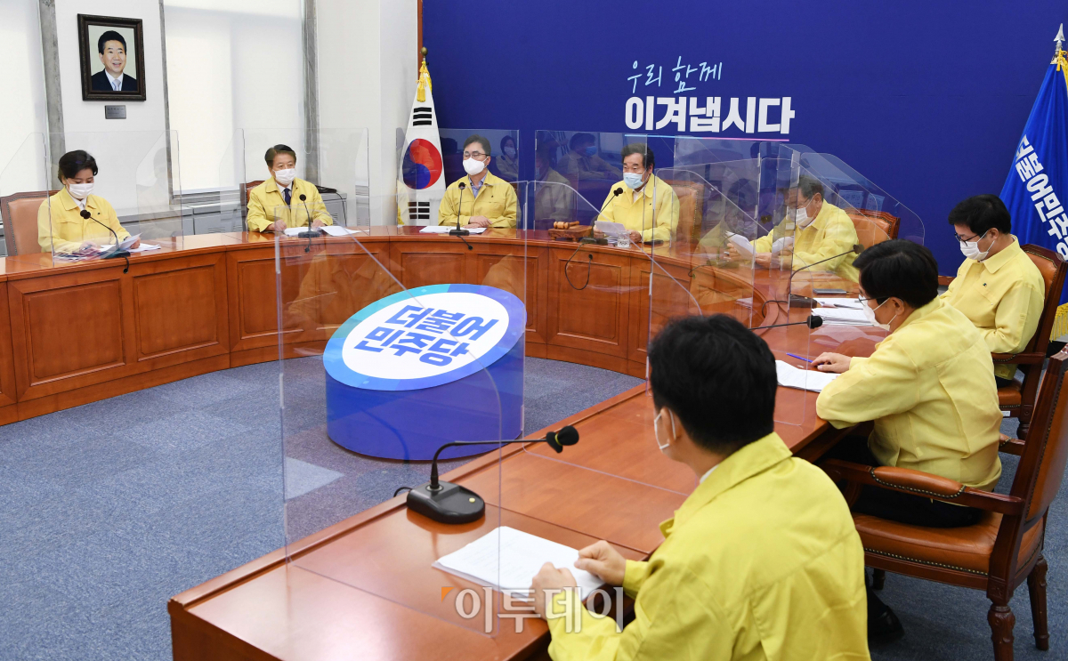 이낙연 더불어민주당 신임 당대표(왼쪽 네번째)가 31일 오후 서울 여의도 국회에서 열린 더불어민주당 최고위원회의에 참석해 회의를 주재하고 있다.