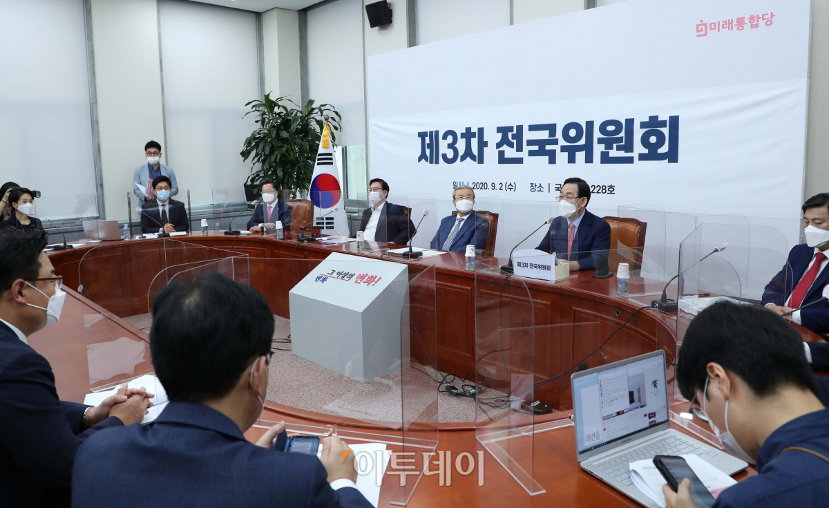 주호영 미래통합당 원내대표가 2일 오전 서울 여의도 국회에서 열린 전국위원회에서 모두발언을 하고 있다.