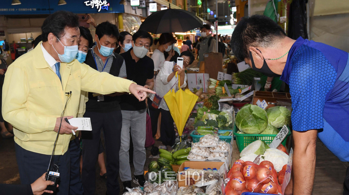 [포토] 코로나19 재확산, 전통시장 찾은 이낙연 대표