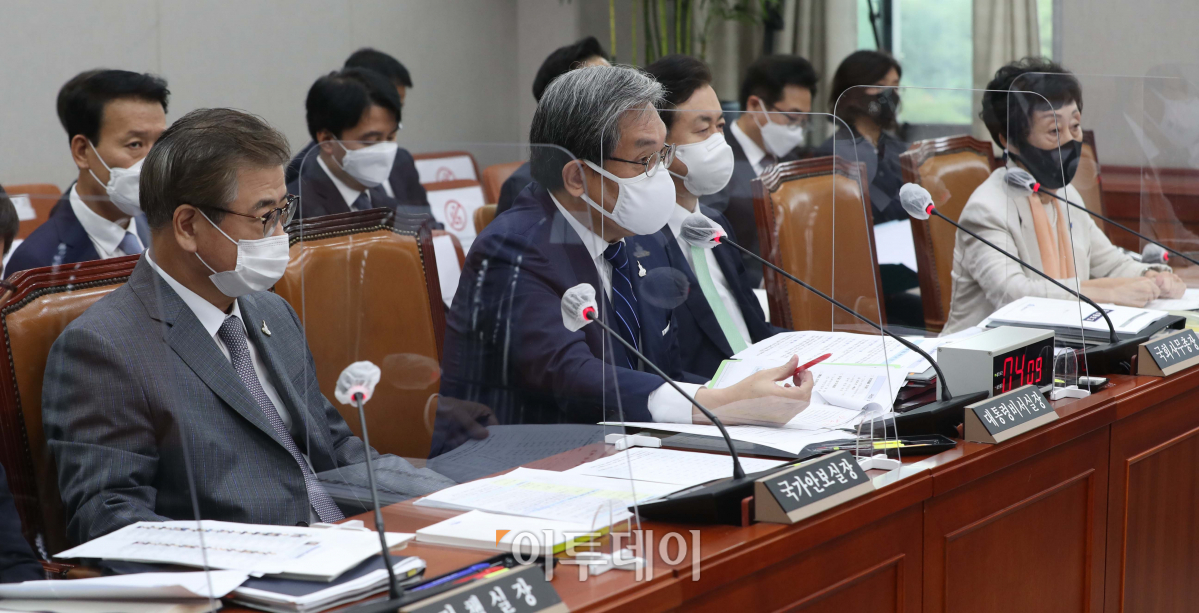 노영민 청와대 비서실장이 2일 오후 국회 운영위원회에서 열린 대통령 비서실 등에 대한 결산 심사 및 업무 보고에서 의원들의 질의에 답하고 있다.