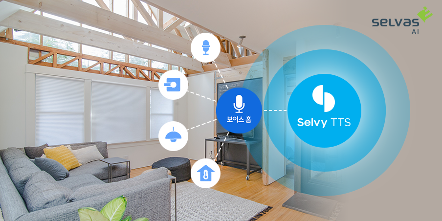 셀바스 AI의 음성합성 기술 (TTS: Text To Speech) ‘Selvy TTS’는 보이스홈 적용 핵심 기술 중 하나로 문자정보를 분석하여 자연스러운 사람의 음성으로 바꾸어 들려주는 기술이다.