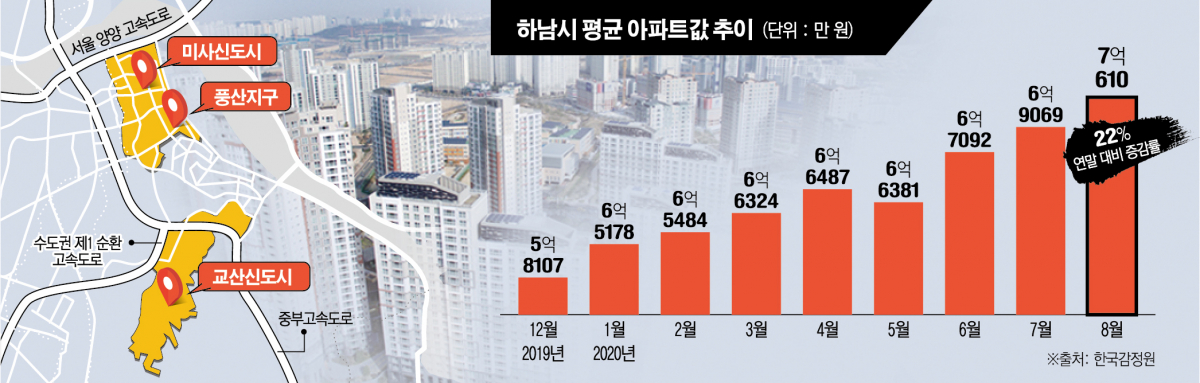 이같은 교통 호재에 힘입어 하남시 전체 집값도 상승세를 타고 있다. 한국감정원에 따르면 지난해 말 하남시 평균 아파트값은 5억8107만이었으나 지난달엔 7억610만 원으로 껑충 뛰었다.