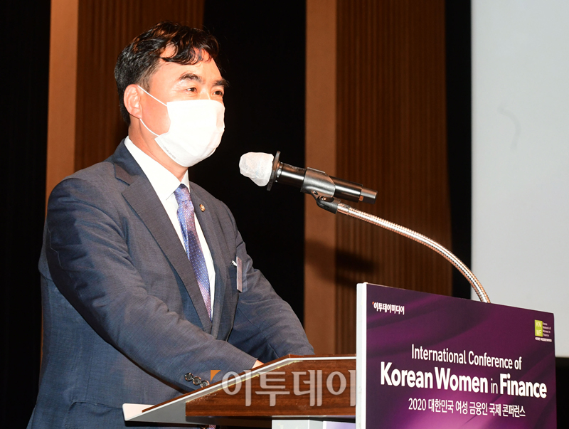 윤관석 국회 정무위원장이 8일 서울 중구 대한상공회의소 국제회의장에서 열린 '2020 대한민국 여성 금융인 국제 콘퍼런스'에서 축사를 하고 있다. 이번 행사는 '지속가능한 성장을 이끄는 새로운 물결 -다양성과 포용성-'을 주제로 이투데이미디어와 여성금융인네트워크가 공동 주최했다. 고이란 기자 photoeran@