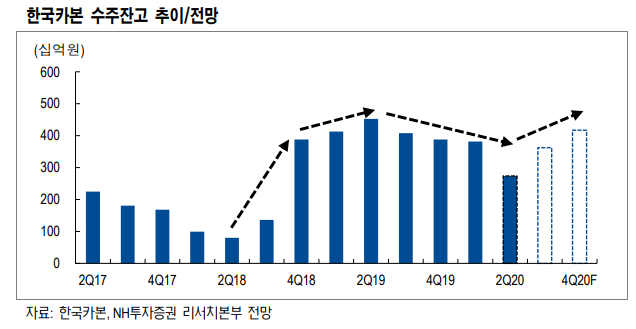NH투자증권은 한국카본에 대해 10일 복합소재 사업 확대로 내년부터 관련 영업이익이 발생할 전망이라며 투자의견 ‘매수’, 목표주가 1만2000원으로 상향 조정했다.