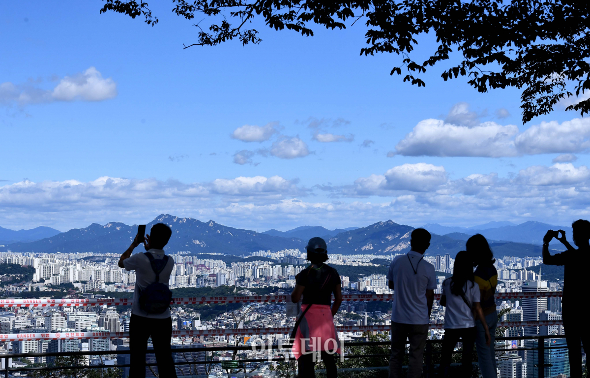 완연한 가을날씨를 보인 13일 서울 남산에서 바라본 하늘이 푸르다. 기상청은 오는 15일까지 전국이 대체로 쾌청한 날씨를 나타내고 일교차가 클 것으로 예상했으며, 16일부터 전국에 비가 올 것으로 내다봤다.