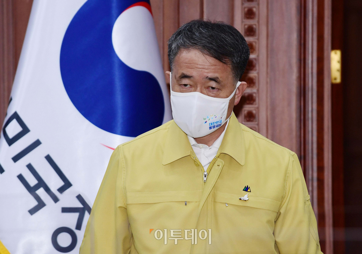 박능후 보건복지부 장관이 13일 서울 종로구 정부서울청사에서 열린 코로나19 대응 중앙재난안전대책본부 회의에 참석하고 있다.