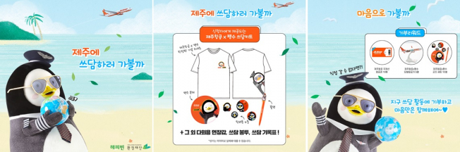 참가자 전원에게는 봉사활동에 필요한 장갑, 봉투 등이 들어있는 키트와 함께 제주항공x펭수 협업 한정판 티셔츠와 상품을 증정한다. 10 월 1일부터 10월 31일까지 한 달간 제주 해변 어디서나 원하는 시간에 봉사활동을 진행하면 된다.