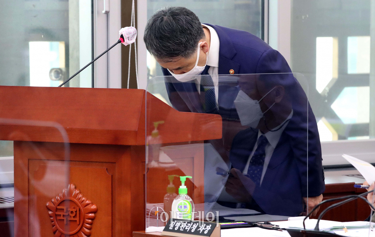 박능후 보건복지부장관이 17일 오전 국회에서 열린 보건복지위 전체회의에서 인사하고 있다.