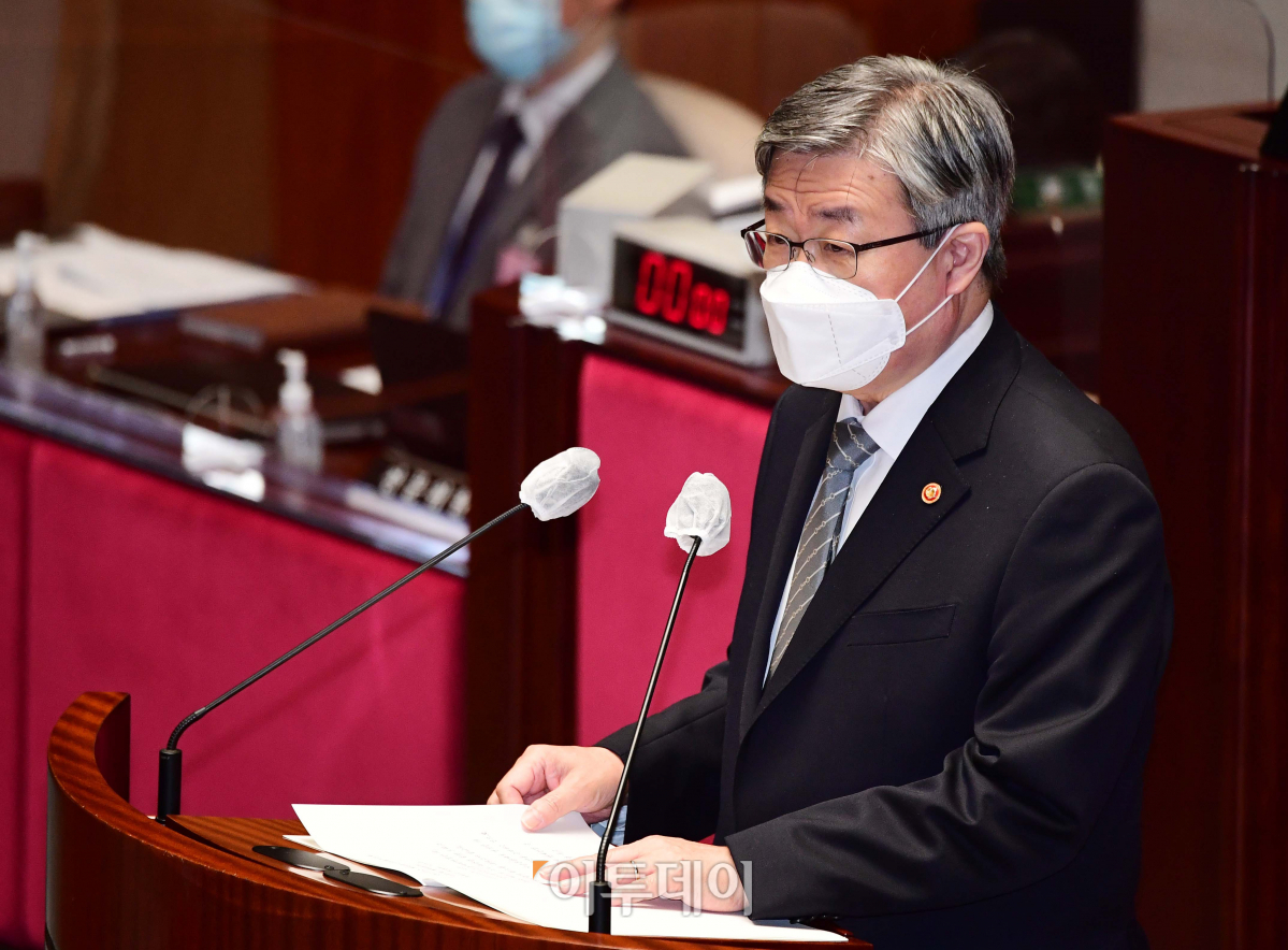 이재갑 고용노동부 장관이 18일 국회에서 열린 예산결산특별위원회 전체회의에서 제안설명을 하고 있다. 국회 예산결산특별위원회는 오늘 전체회의에서 정부를 상대로 종합정책질의를 열고 7조8천억원 규모의 4차 추가경정예산안에 대한 본격적인 심사에 착수 한다.