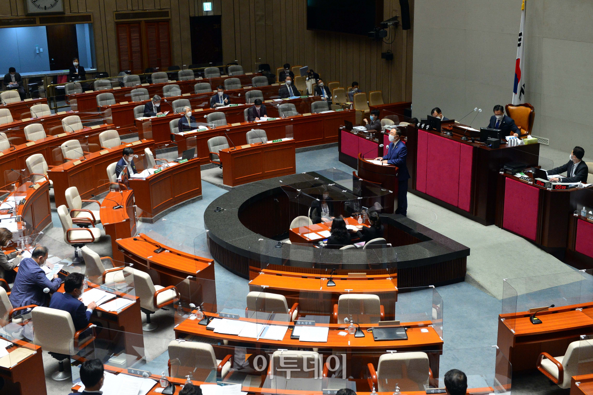 홍남기 경제부총리 겸 기획재정부 장관이 18일 국회에서 열린 예산결산특별위원회 전체회의에서 제안설명을 하고 있다. 국회 예산결산특별위원회는 오늘 전체회의에서 정부를 상대로 종합정책질의를 열고 7조8천억원 규모의 4차 추가경정예산안에 대한 본격적인 심사에 착수 한다.