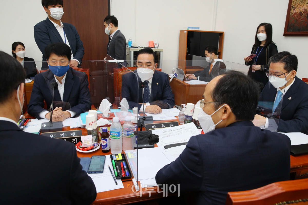더불어민주당 박홍근 국회 예결위원위 간사가 21일 국회에서 열린 예산결산특별위원회 제4회 추경예산안등조정소위원회에서 인사말하고 있다.