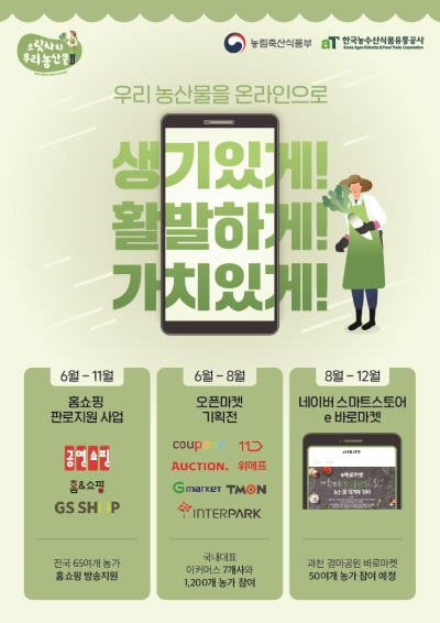 8월까지 쿠팡, G마켓, 위메프 등 국내 대표 오픈마켓 채널에 우리 농산물 전용기획관을 열어 중소농가를 지원한바 있으며, 11월까지 소비자들은 공영쇼핑, 홈앤쇼핑, GS홈쇼핑 3개 채널을 통해 금산 홍삼스틱, 순창 오미자, 안면도 고춧가루 등 전국의 우수 농식품을 안방에서 만나볼 수 있다.