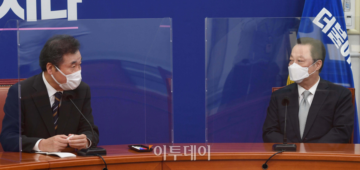 이낙연 더불어민주당 대표가 22일 서울 여의도 국회 당 대표실에서 박용만 대한상공회의소 회장을 예방한 뒤 발언하고 있다.