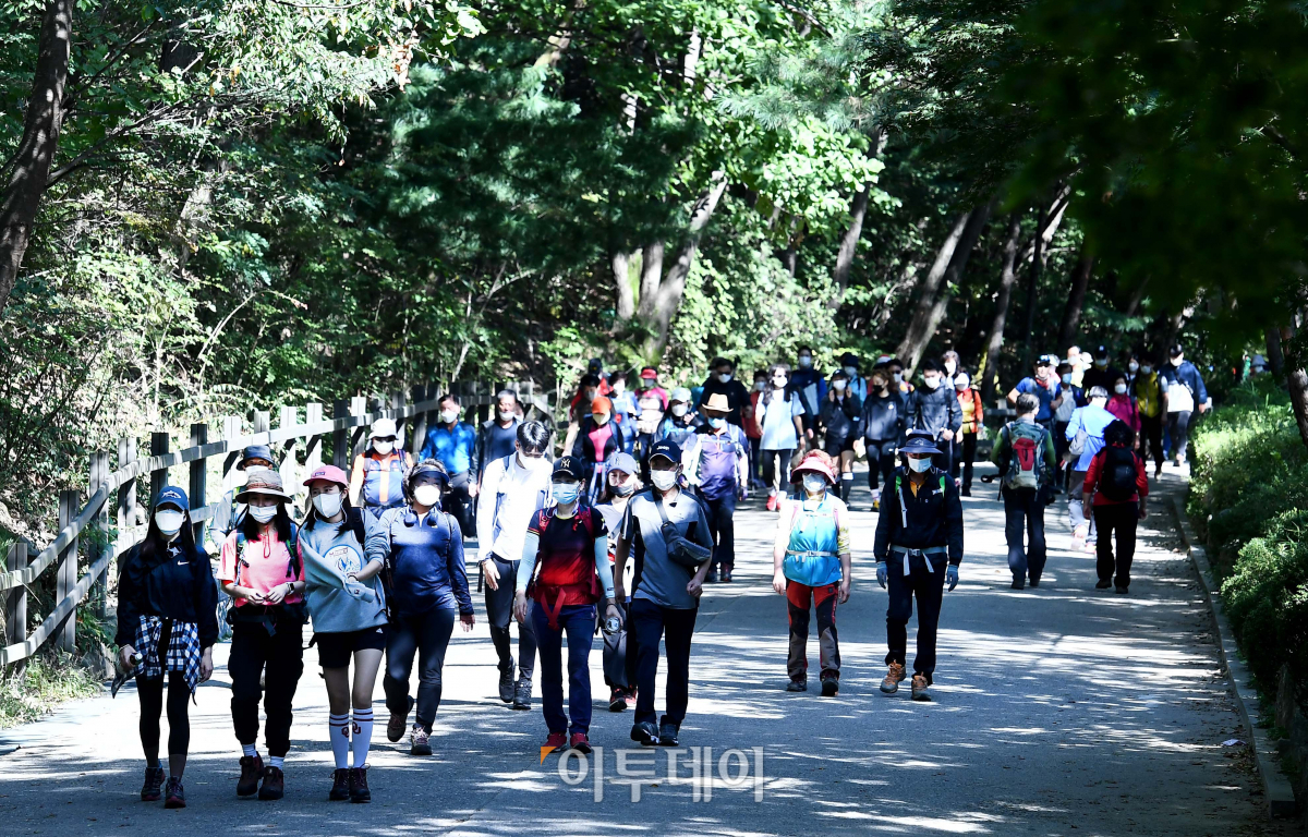 전국이 맑고 쾌청한 가을 날씨를 보인 27일 관악산 등산로에서 시민들이 산행을 즐기고 있다.