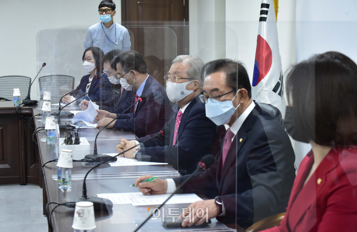 김종인 비상대책위원장이 5일 서울 여의도 국민의힘 중앙당사에서 열린 비상대책위원회의에서 모두발언하고 있다.
