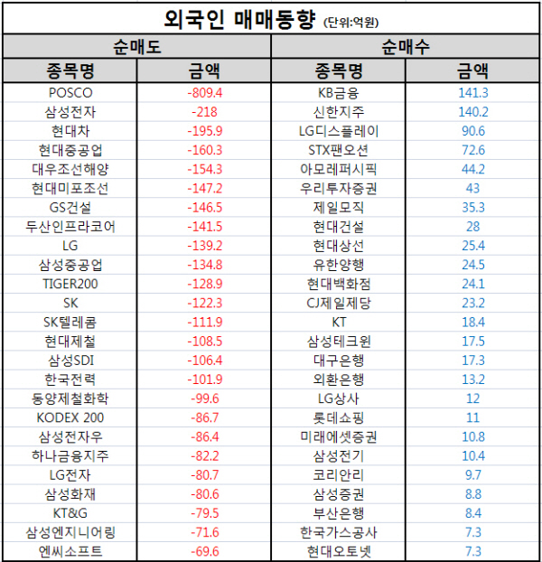 11/13 코스피, 외국인 매매동향
