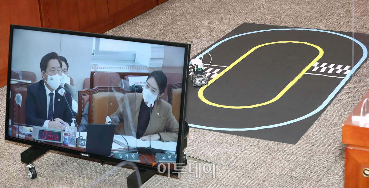 7일 오전 서울 여의도 국회에서 열린 국회 산업통상자원중소벤처기업위원회의 산업통상자원부에 대한 2020년 국정감사에서 고민정 더불어민주당 의원의 질의중 자율주행 관련 기술 시연이 진행되고 있다.