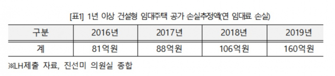 건설임대형으로 제공된 공공주택들이 빈집으로 방치되면서 한국토지주택공사(LH)의 임대료 임대료 손실액도 매년 크게 증가하고 있는 것으로 나타났다.