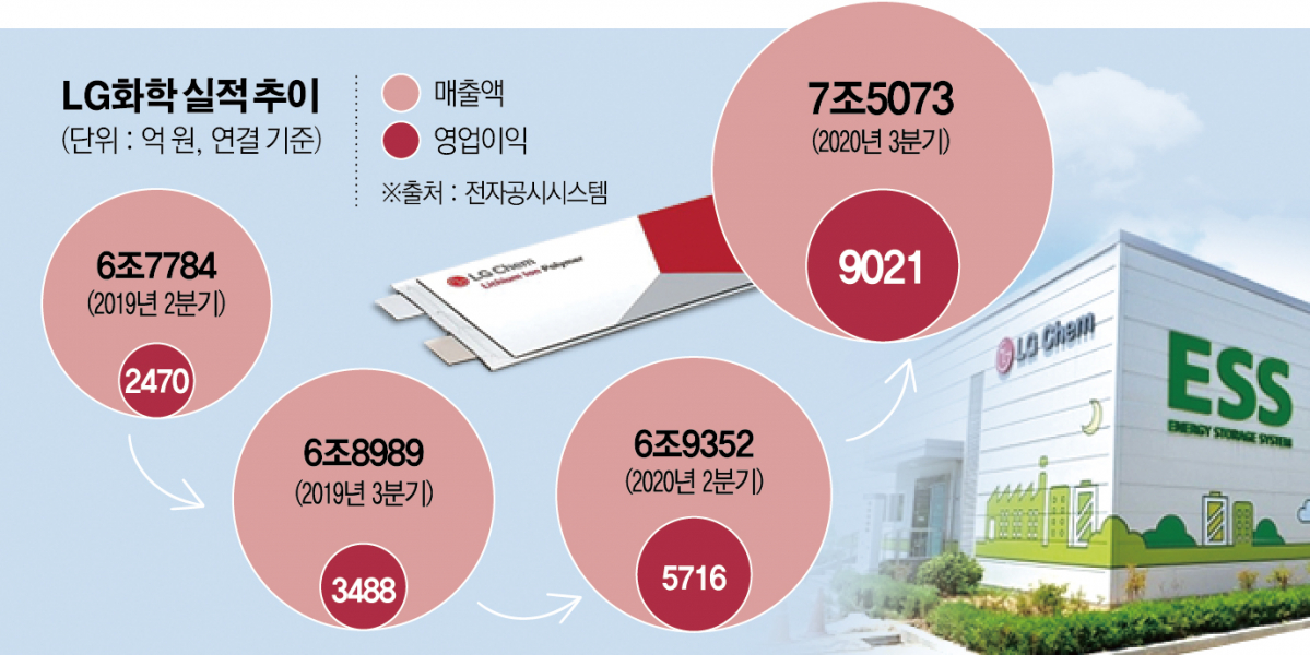 전지 부문 분사를 앞두고 LG화학은 뿔난 주주들을 달래기 위해 이례적으로 발표한 잠정실적에서 매출과 영업이익이 모두 분기 최대 실적을 기록하며 전지 부문 물적 분할의 '청신호'를 보냈다.