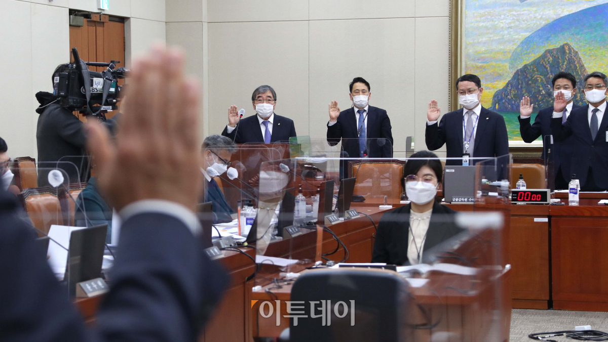 [포토] 증인선서하는 윤석헌 금융감독원장