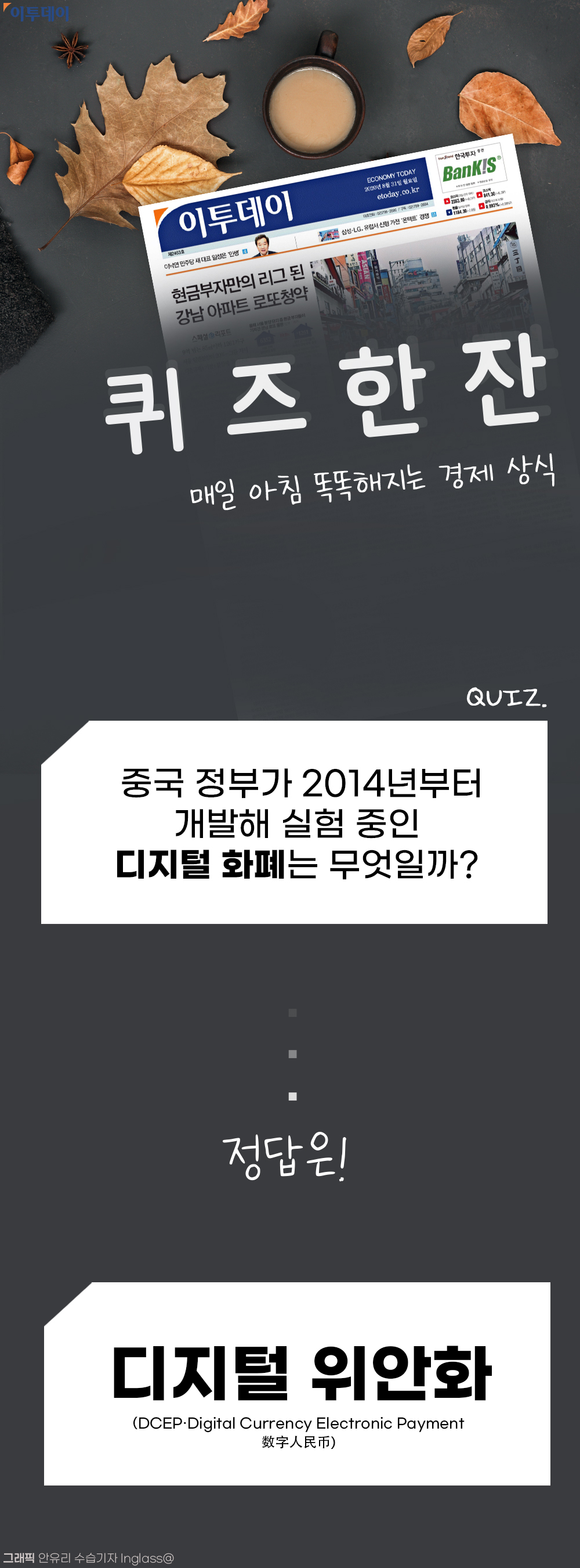 중국 인민은행이 선전 시민 5만 명에게 1인당 200위안(한화 약 3만4000원)씩 '이것'을 지급했다. 이것은 중국 정부가 2014년부터 연구하며 지속해서 실험하고 있는 디지털 화폐다. 이것은 무엇일까?