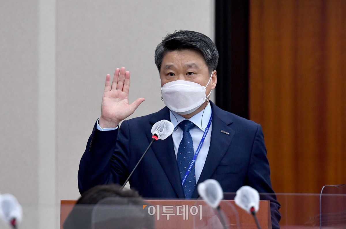김학도 중소벤처기업진흥공단 이사장이 19일 서울 여의도 국회에서 열린 산업통상자원중소벤처기업위원회 국정감사에서 선서하고 있다.