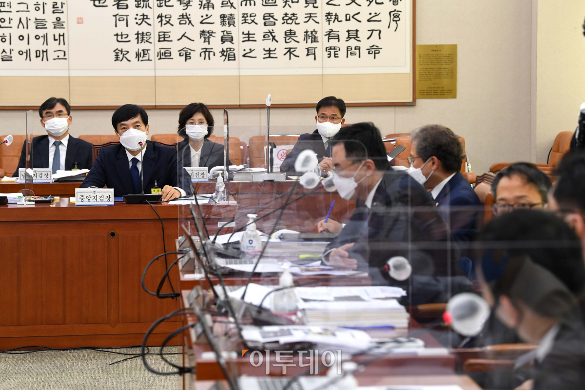 이성윤 서울중앙지방검찰청장이 19일 오전 서울 여의도 국회에서 열린 법제사법위원회의 서울고등검찰청, 서울지방검찰청 등에 대한 국정감사에 출석해 의원 질의에 답변하고 있다.