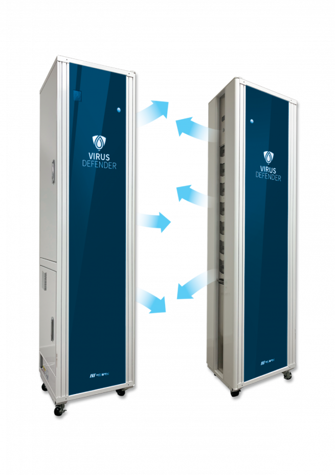 반면 바이러스디펜더는 전방위로 가동되는 네 개의 휠이 장착되어 어디로든 편하게 이동이 간단하다. 또한 특별한 설비가 필요 없어 원하는 장소에 이동 후 전원만 연결하면 즉시 사용할 수 있다는 장점이 있다.